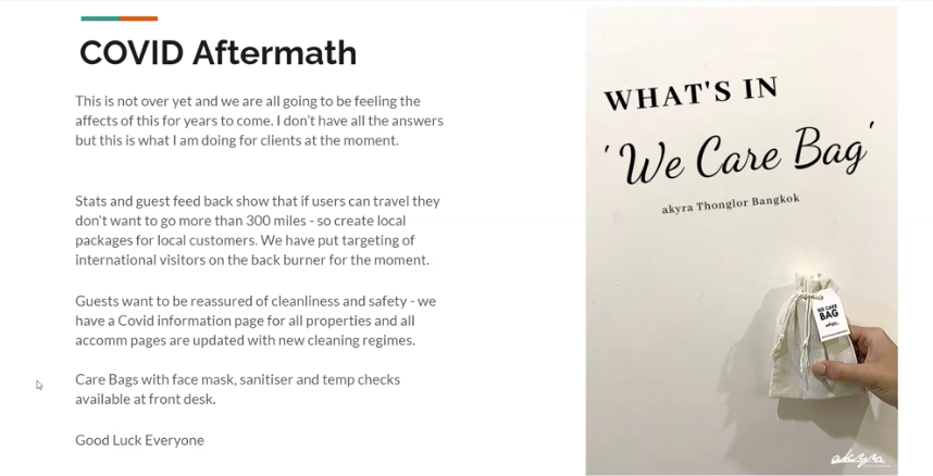 Think Big: Be the source of information for the area your property is located in. Rank for destination (location) and build your brand (reinforcing in location).Â