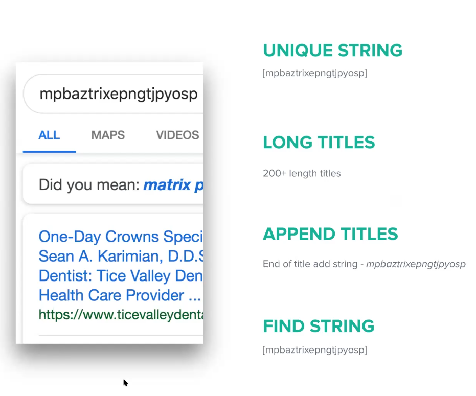 They did this with thousands of pages and their unique string/term showed up. In the past, it didn’t exist on Google, but now it does. It’s now returning the most prominent page for that search, but it’s really the relevance that brought it up. This means that you don’t have to fear that ellipsis (…) when it comes to your title tags. Even if you have the dot dot dot, even if you have some SEO tool from some big company that tells you that you shouldn’t have long title tags – that ellipsis is working for you! Everything behind that ellipsis is driving relevance in search.That ellipsis (…) in your long title tag is working for you! Ignore the SEO dogma of 50-60 character length title tags. Everything behind that ellipsis is driving relevance in search!How can we use this information to improve our search on Google?