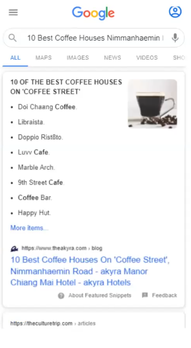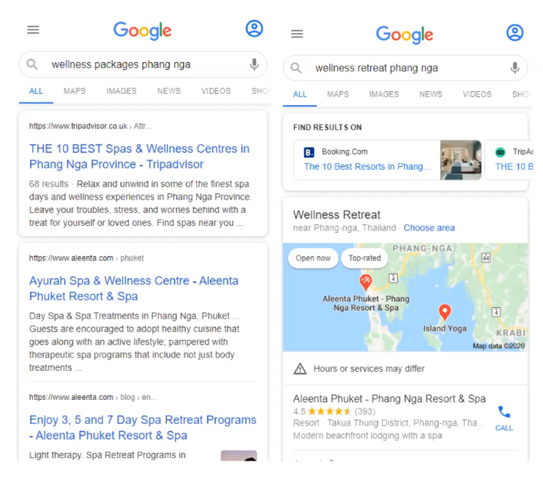 Here’s an example of a hotel in Phuket that couldn’t rank anymore in 2018 (after queries update) for “Hotel + Location”, but they were able to rank for their bedrooms and the types of accommodations available.Â