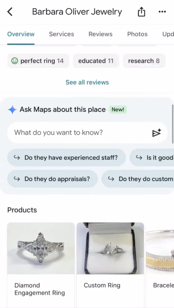 “It uses Gemini to summarize information about the business drawn from its GBP, reviews, the website and third-party sources, apparently in that order. Mike discovered this at the end of last month. It’s effectively a much better version of Google Q&A. This mirrors the function of Amazon’s shopping assistant Rufus, with which you can ask questions about the product and reviews content. While “Ask Maps” hasn’t shown up for me I’ve used Rufus extensively on Amazon and it’s quite helpful.“