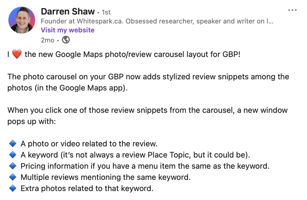 It’s spring, and our own Darren Shaw is in love…with this new review/photo carousel layout in G Maps: