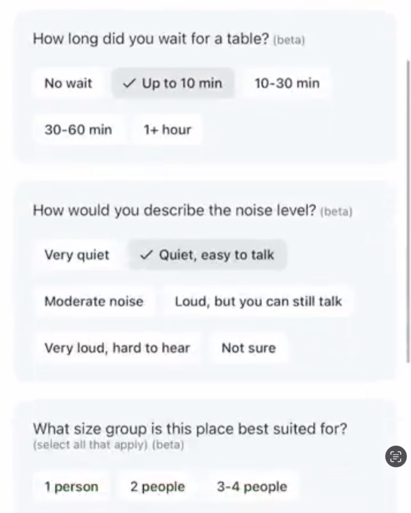 Claudia speculates that this expanded set of questions could be used to feed the Gemini-based Ask Maps feature mentioned above. Keep those reviews coming in!