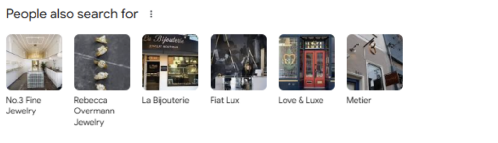 SERP features like “People also search for” are replete with images, as are multiple GBP features including Products, reviewer profiles, See What’s in Store, Updates, and Explore More.