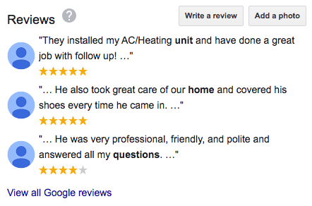 As a side note, if you’ve reviewed a business, you will likely see your own review included with those featured when viewing the business on that account.