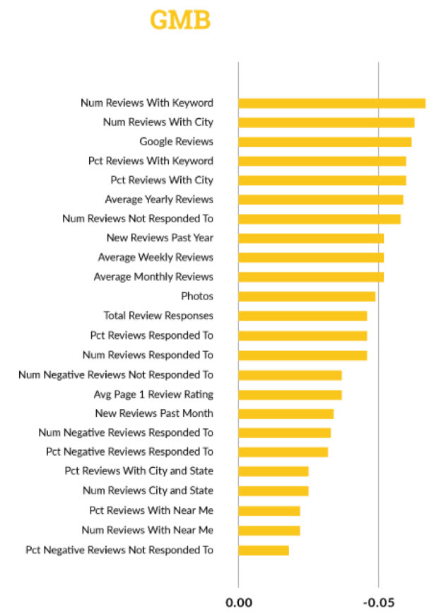 Now, we have some empirical data to back that up. Andrew Shotland and Dan Leibson put together this empirical study, the 2017 Local SEO ranking factors where they crawled a bunch of businesses, and then they tried to correlate specific data points with their rankings. They looked at this very specific factor, which is percentage of reviews that have the keyword that was searched, and percentage of reviews with the city. These have a very high correlation with that factor and their rankings. So we have some empirical data to back it up.