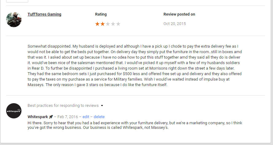However, you can make it clear to other customers and prospective customers that you are aware of the review, you take what reviewers say seriously, and that as a business you are dedicated to remedying these types of situations.