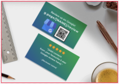 When it comes to winning at reviews, you can keep it simple and be successful. We recommend that after personally asking clients to leave you a review, share a review request card with a link and QR code for your Google review page. Show your client that all they have to do is aim their smartphone camera at the QR code to open the page to review your business. Make it as easy as possible for clients – with fewer barriers, they’re more likely to follow through with a review. For our review links, we like to use the GMB short name (from the GMB Info section of the dashboard), just add /review to your g.page/shortname link.