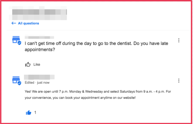 Not managing your Q&A means you’re letting other Google Maps users answer questions on behalf of your business. From the business listings we reviewed, user-provided answers often: