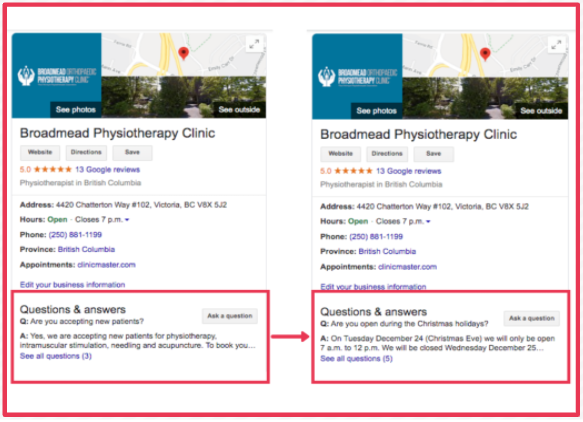 Released in August 2017, the Questions & Answers feature allows businesses to engage with customers and offer frequently asked question content directly in the business profile.