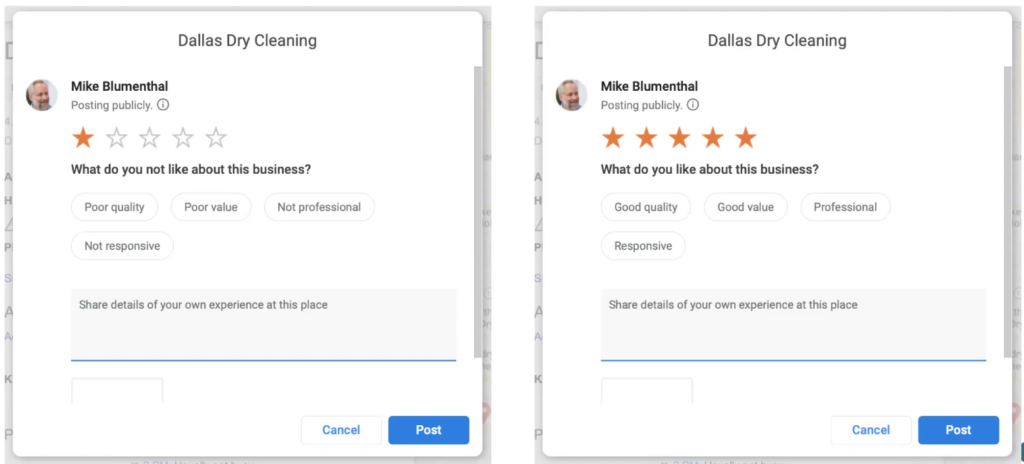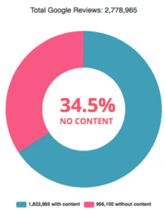 GatherUp looked at 2,778,965 reviews and found that 34.5% were rating only reviews. From the searching consumer’s point of view, a rating doesnât tell them much, a customer was happy or unhappy but they don’t know why. Ratings alone also donât tell the business much, what did they do wrong? And they doesnât tell Google much, what is the problem in this situation?Â