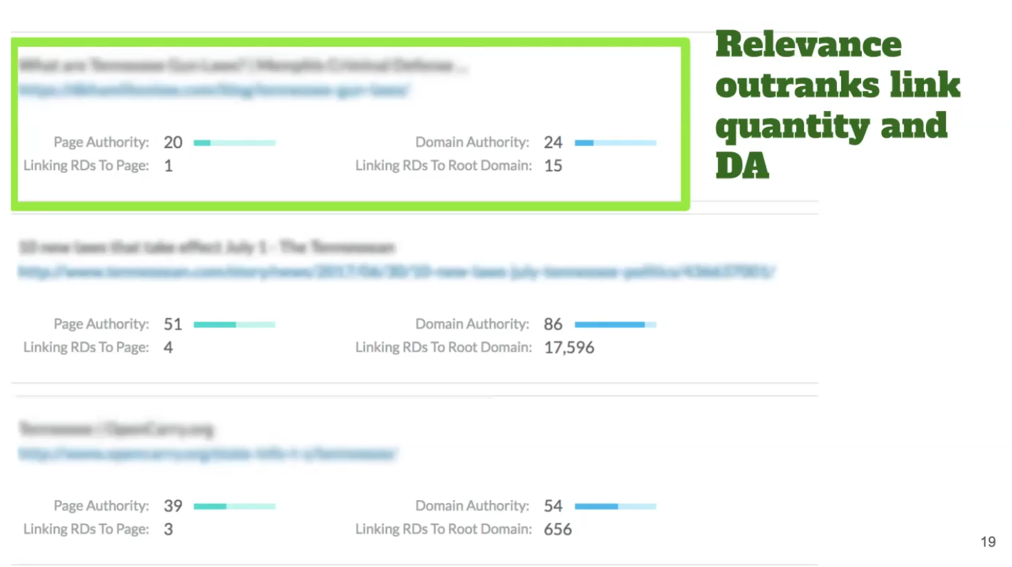 For local link prospecting you can pretty much ignore Domain Authority (DA) and focus on relevance instead by identifying relevant prospects, both topically and geographically.Â