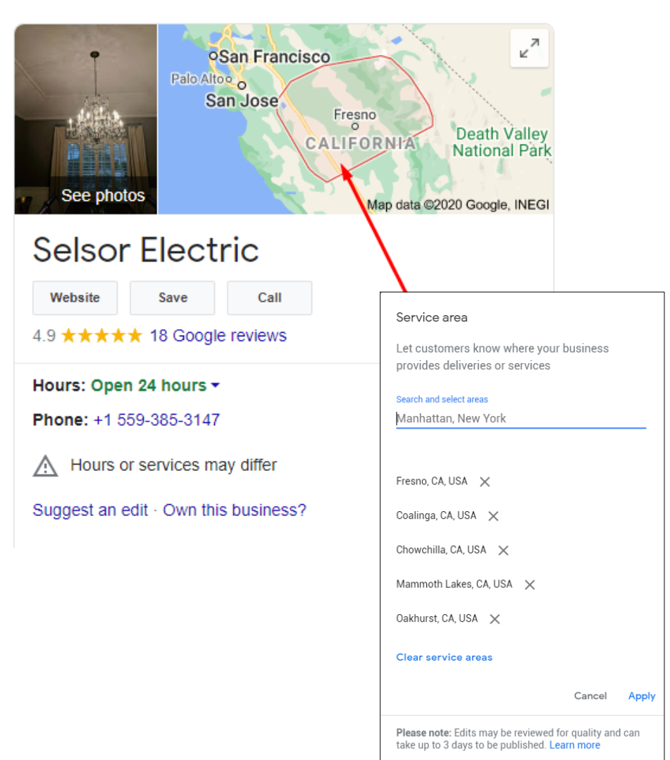 “It’d be easier for the customer to find your listing on Google if your description included Harry’s NY Pizza in Dublin, CA” instead of only “Harry’s Pizza in CA”
