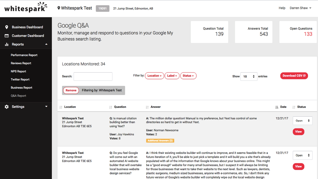 The Reputation Builder now offers Google Q&A monitoring to help you turn this feature into a business-building asset and prevent it from becoming a brand hazard. This feature is available to all of our Pro plans and was created to help agencies, brands, and multi-location businesses easily monitor, report, and utilize the Q&A feature.