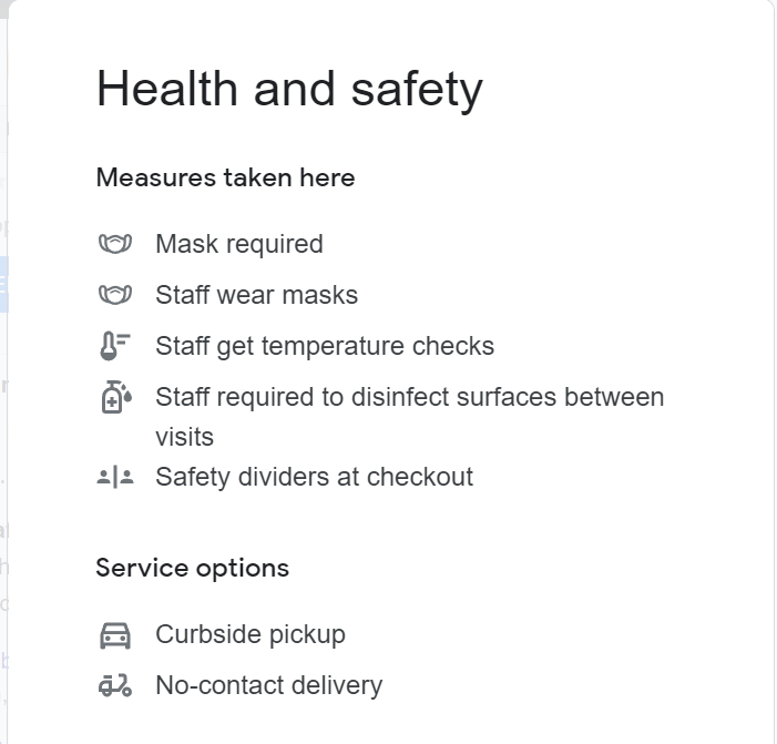 Update your business information in Google My Business to include all relevant attributes, amenities, and available health & safety and service options.