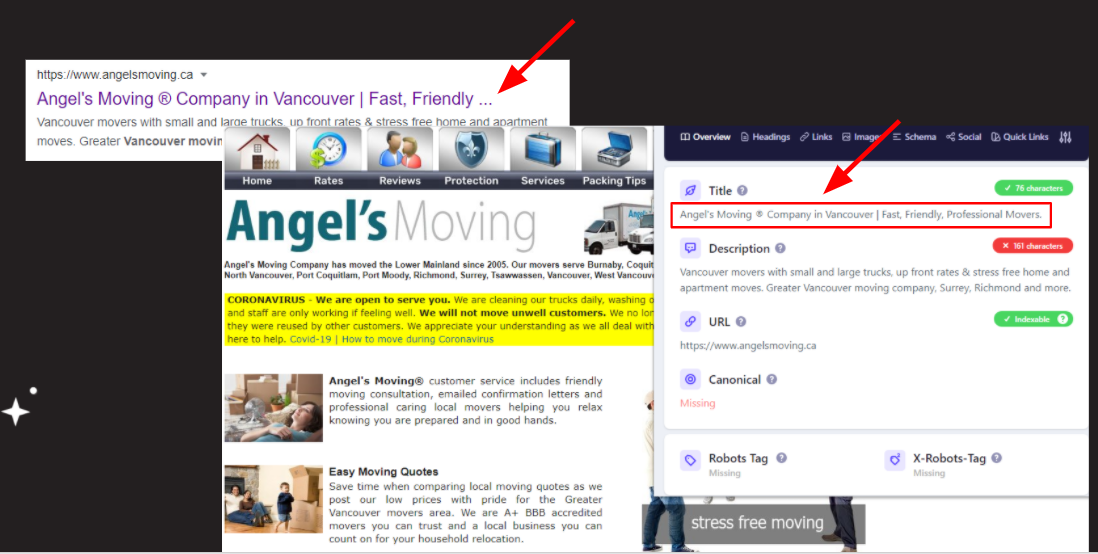 So this business here, their title tag is actually Angels Moving Company in Vancouver | Fast, Friendly, Professional Movers.