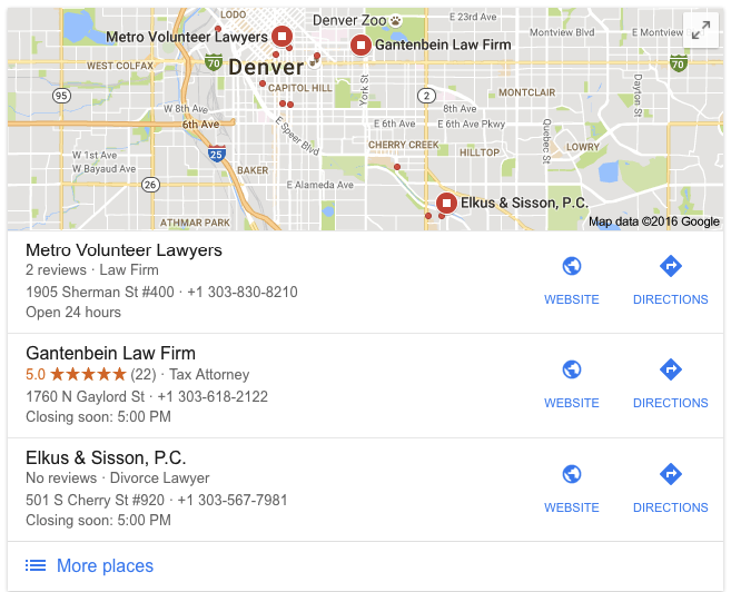 In July 2014, Google released a major update to the local search algorithm called Pigeon that heavily impacted local results. There is now more emphasis on organic results and traditional web ranking signals, including on-page and link based factors. The dial was cranked on Domain Authority, and gaining quality local links has become one of the most important difference makers in competitive local search results like the example above.