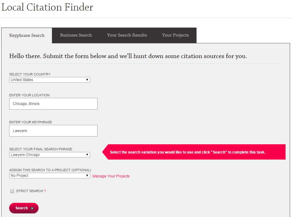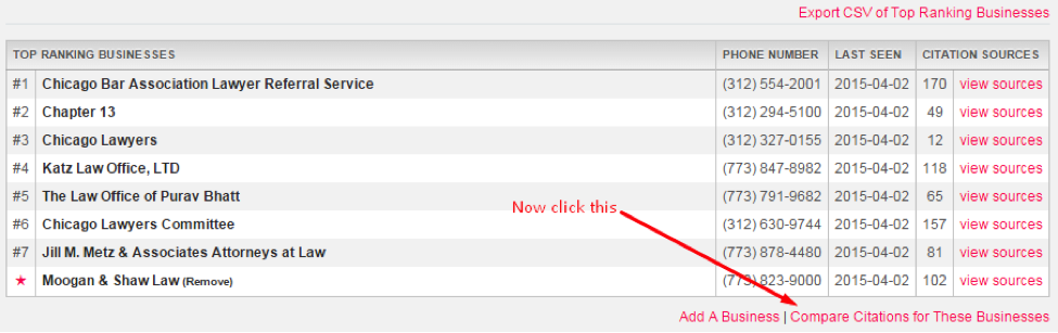 The Local Citation Finder will find all the top rankings business for your search term, and then let you compare their citations with yours to find the common citations that youâre missing. Hereâs how to get this data: