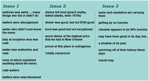I confess, I’m a restaurant review addict. Weird as this may sound, I fritter away all kinds of free time reading the reviews of famous restaurants which I’ll probably never have the chance to visit. As a form of recreational reading material, reviews offer great drama, high hopes, crushing disappointments and glimpses of life that tell a story of big wins and big losses. In this post, I’ll show you how to mine reviews, organize data and turn those losses into wins.