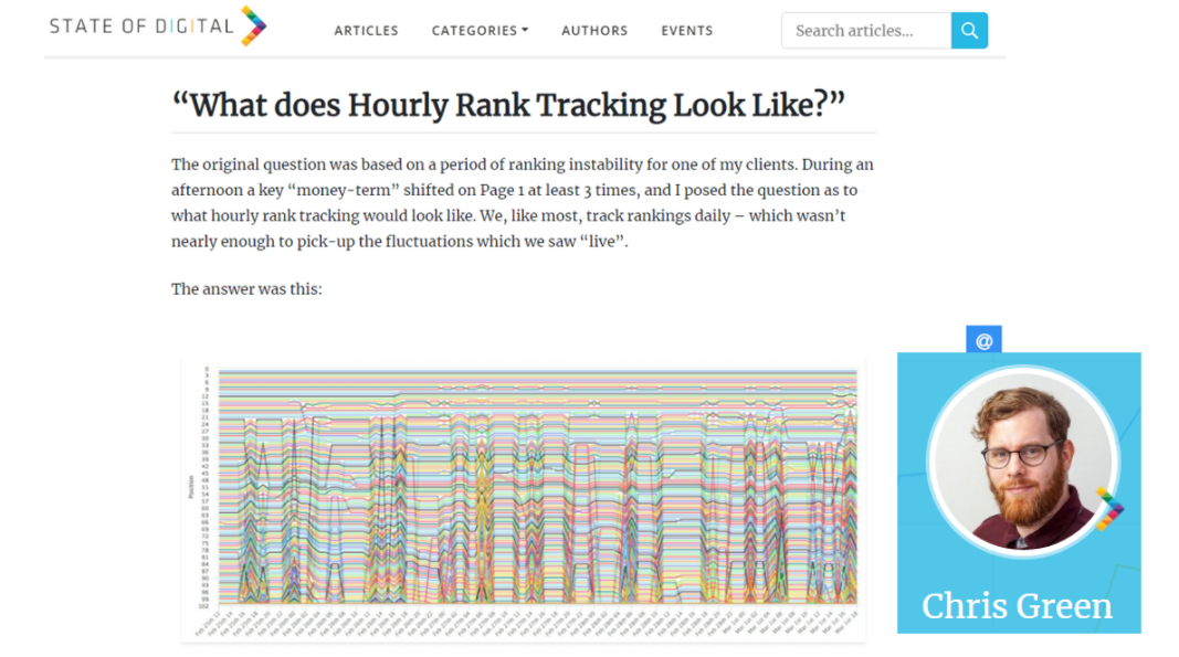 This really makes you think about the frequency of rank tracking. So some people only track rankings monthly. If you track rankings monthly, you are really missing out on those trends. You need to see things over time because if you’re only tracking monthly, you might see that number and think – oh no, we totally fell off for that term, we better do something. You might mobilize the forces to try and get this thing fixed. But in reality, it’s not really a problem, you just happen to catch it at that little blip.