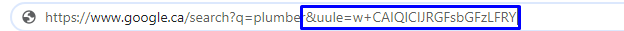 Instead of the location being set to my default location, I can actually add this parameter to the URL at the top here, I can say âUULE= [special code]â.