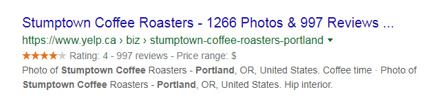 Example of rich snippet results with review schema: