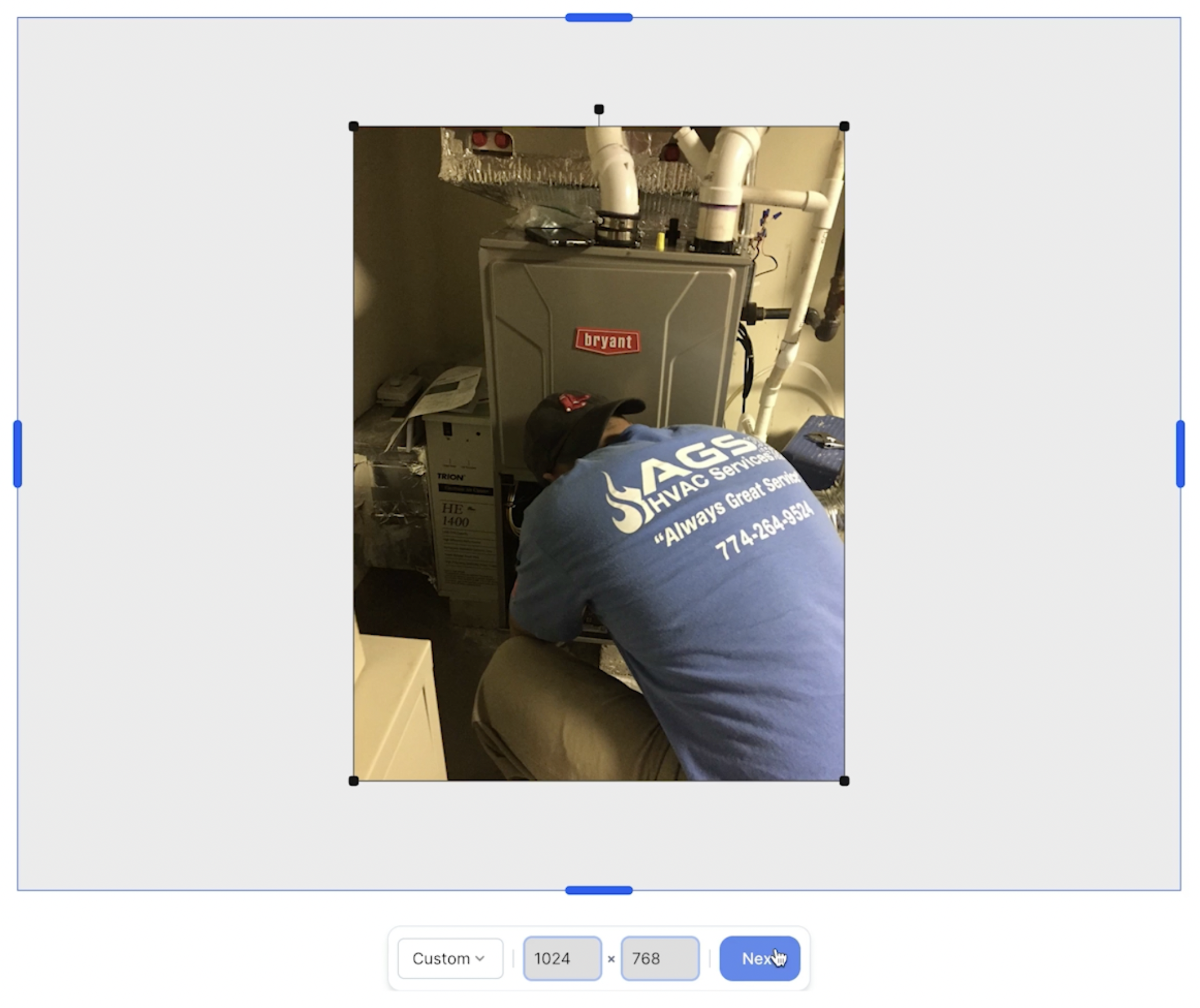 The free version of Clip Drop allows a maximum width of 1024, but 1024×768 is the same aspect ratio as our beloved 1200×900. So, I’m just going to adjust the dimensions, center my image, click “Next” and it will generate the rest of the picture for me!