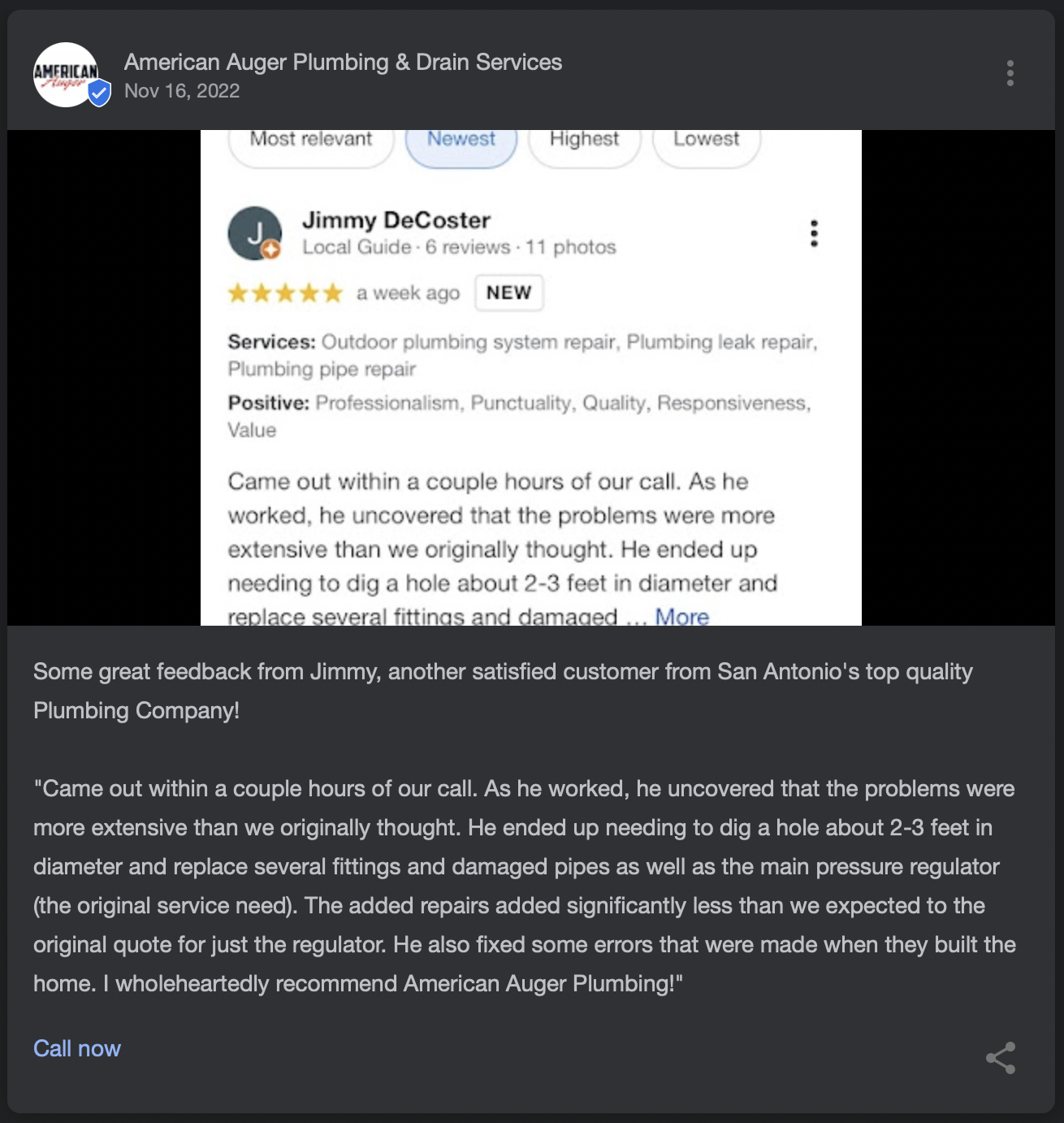 Here’s a top tip. Take your best reviews and post them again as Google posts. Some old but gold reviews might be buried in the review section, but you can give them extra visibility on Google Posts.