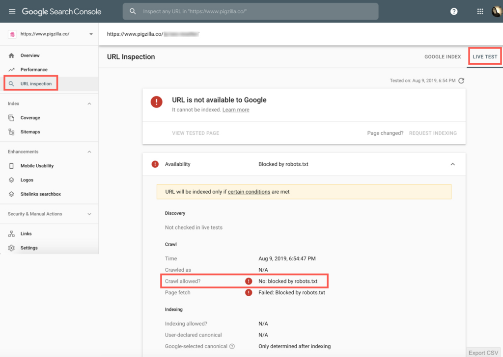 Sign into Google Search Console and navigate to the “URL Inspection” tab. Enter the URL you want to test and then click on the “Test Live URL” button.