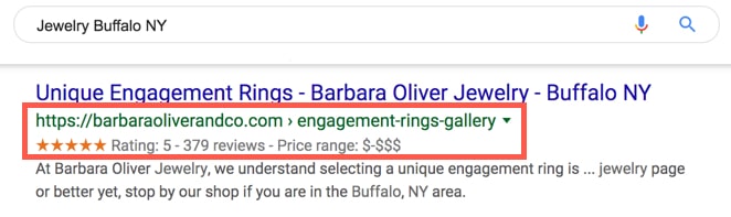 By implementing Review Schema on a web page, you give that page the opportunity to show review stars in the SERPs like this: