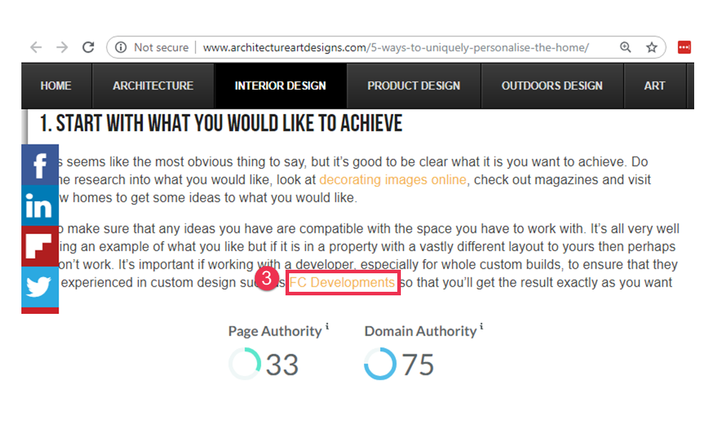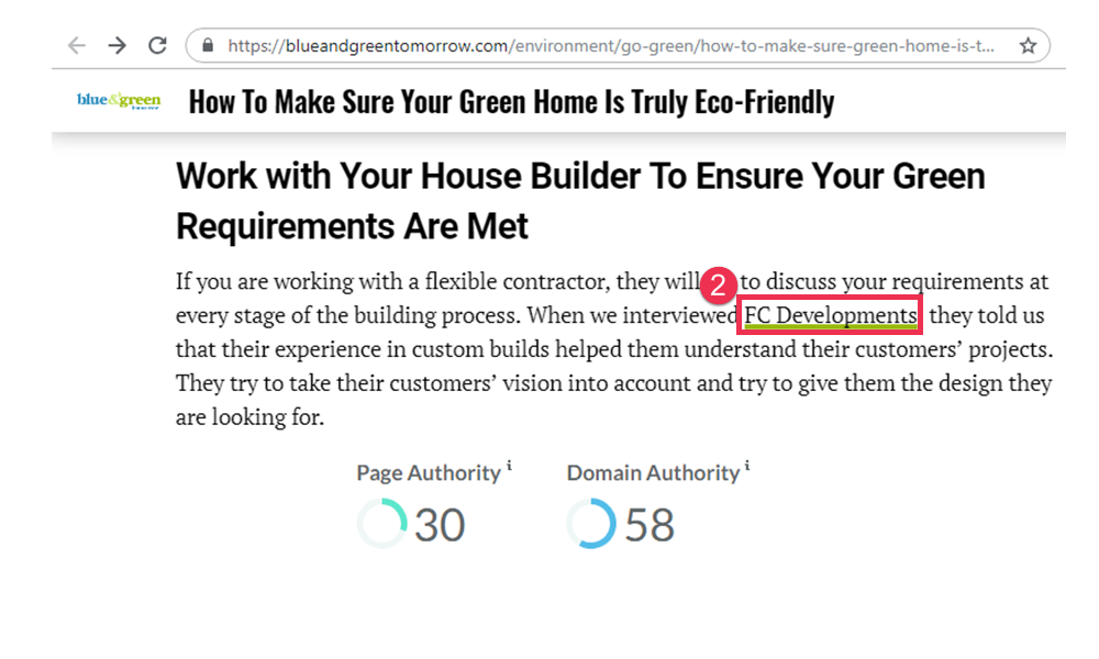 There were still no quality backlinks pointing to the FC Developments website yet, so this was a great opportunity to see the impact of links.