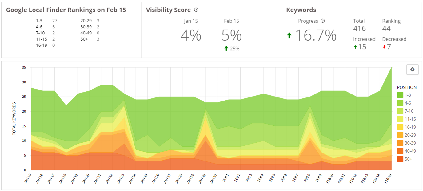 A small boost, but nothing dramatic (below image is of rankings 1 months after citations were built). Citations are more of a foundational factor than a rankings booster. You’ll have a hard time ranking without them, but other tactics in local search will be more likely to move the needle.