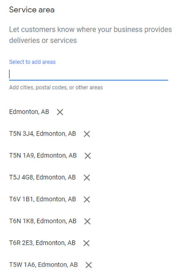 Lots of people have been asking if adding service areas in GMB would help you rank, so I decided to use this opportunity to test for myself. I updated the GMB listing to include the service areas for each postal code I am tracking in their ranking campaign.