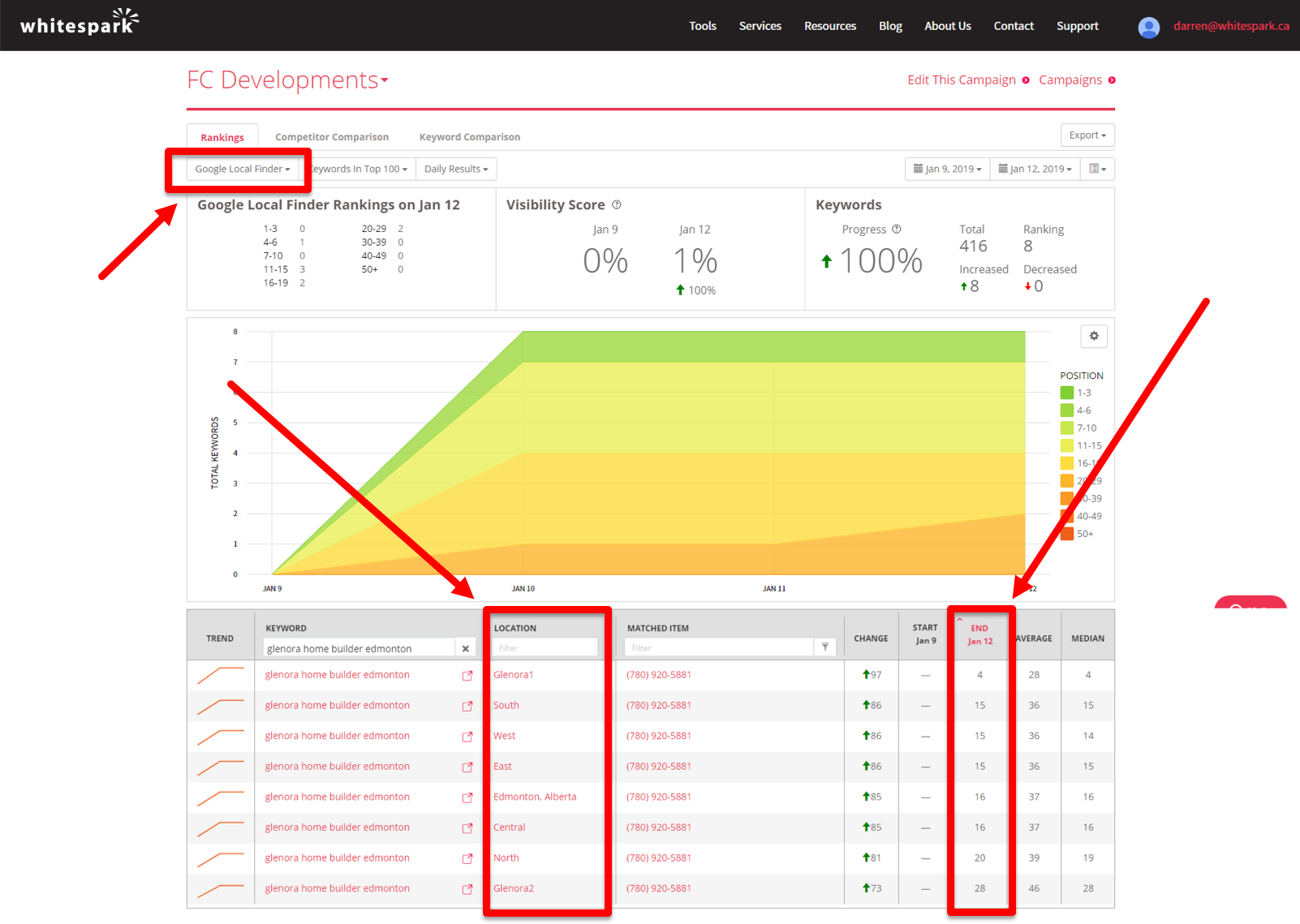 Make sure you’re tracking rankings from multiple zip/postal codes