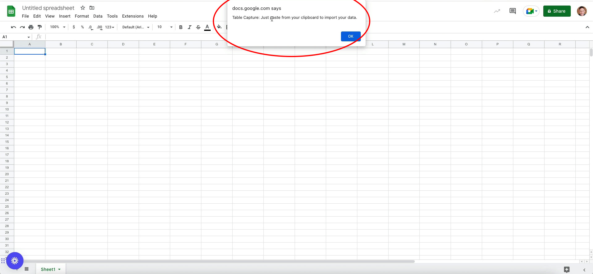 Fourth, click on the Google Sheets button, and it will take you to Google Sheets. It’ll even prompt you to paste the information.