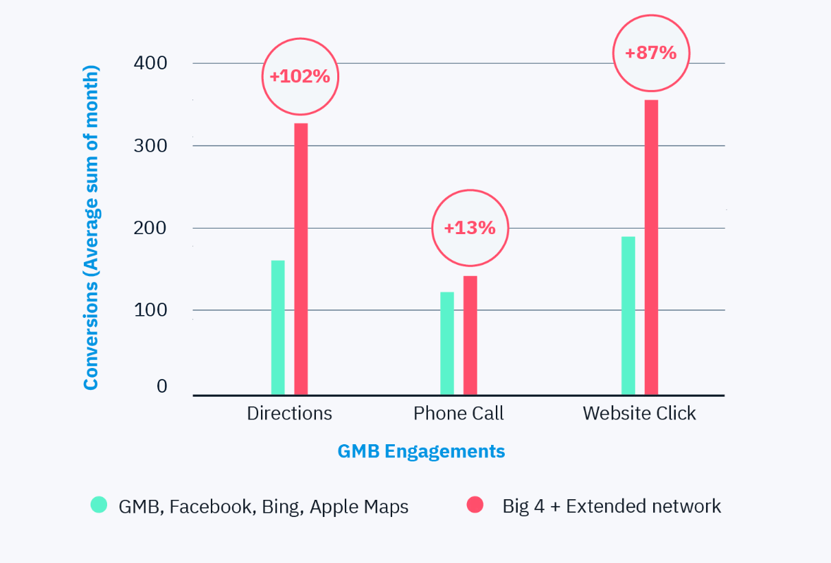 This also converted to more actions happening on the Google Business Profiles. The locations with citations had:
