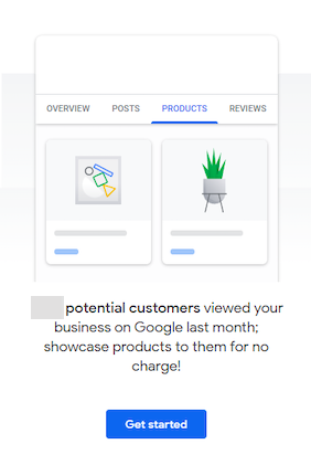 For businesses that have not created Google Products, the “Get started” page is the same: