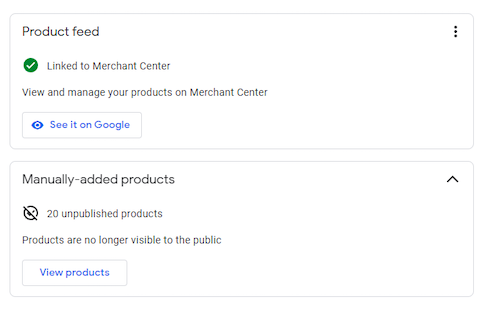 As of May 31, 2022, there is a notice in the dashboard that says Products that were manually added are now “unpublished” and “no longer visible to the public.” But don’t panic yet! Manually added Products are currently visible on Google Maps and Search (on desktop, mobile and in the Maps app).