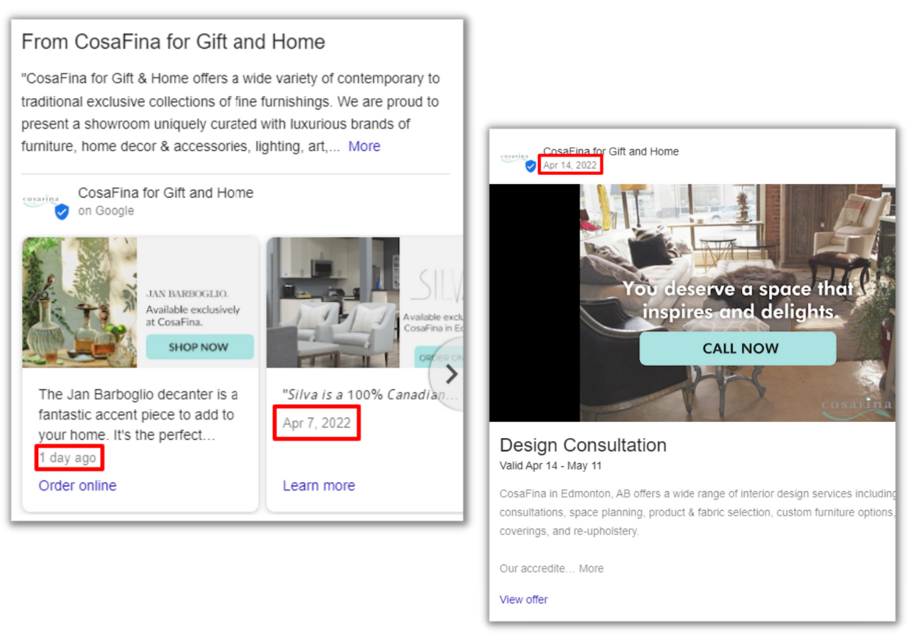 Our prediction is that Google is working on moving Offer Posts into its own tab separate from Google Post updates, similar to what happened with Product Posts. In the past, you were able to only post Products as a Google Post type. Today, Products have their own tab in the Google Business Profile dashboard as well as the Knowledge Panel, across all devices and apps.
