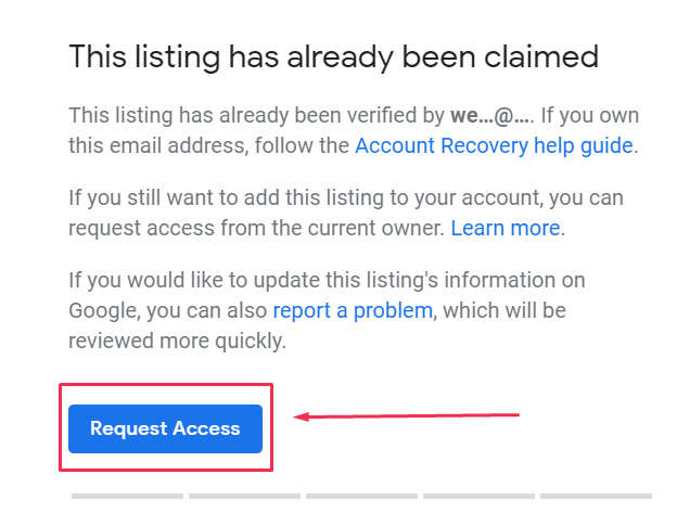 #11. Fill out the form requesting access to the listing.The existing listing owner will receive an email notification that you have requested ownership of the listing and you will get a confirmation email. The current owner has 3 – 7 days to respond. You can see the status of your request by signing in to GMB or clicking the link in your confirmation email.