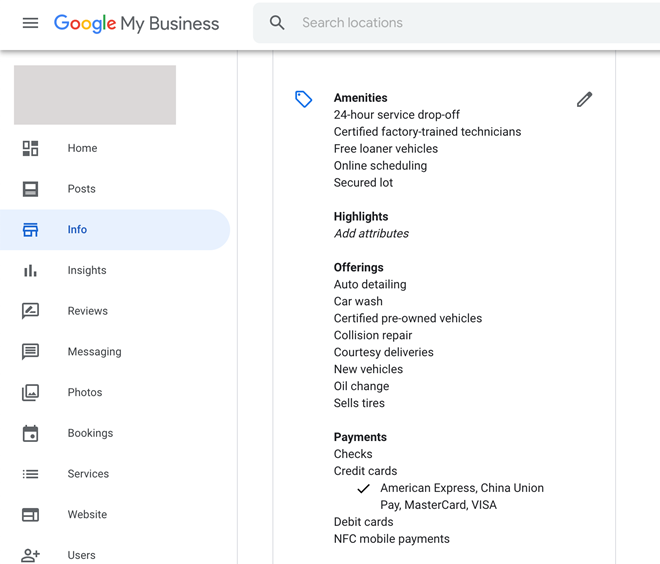 Services allows you to add a list of all the services offered at your dealership, including prices (optional) and a full description. This feature only appears on mobile at the moment in the Maps app and when searching on mobile browsers.