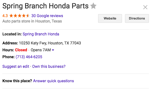 Auto dealerships are in a unique position when it comes to GMB listings, because they are entitled to having multiple separate listings for Service, Sales, and Parts departments that operate at different hours, and that have labelled and separate entrances within the dealership.