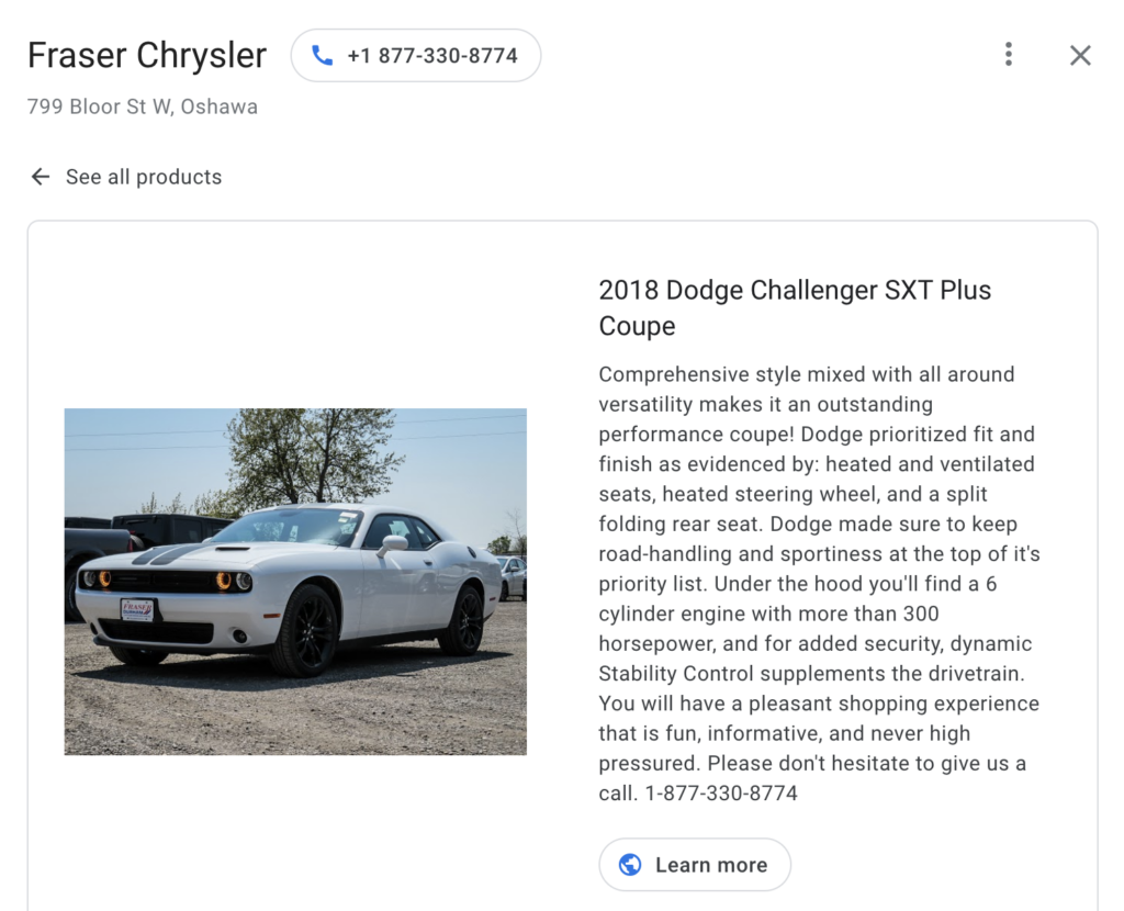 Disclaimer: not all listings have the Products feature, so the 12% stat is a bit misleading. Google hasn’t rolled Products out to all listings yet, but we expect they will in the coming months. Check your GMB Dashboard, and if you have Products on the left side navigation, definitely add some vehicles.