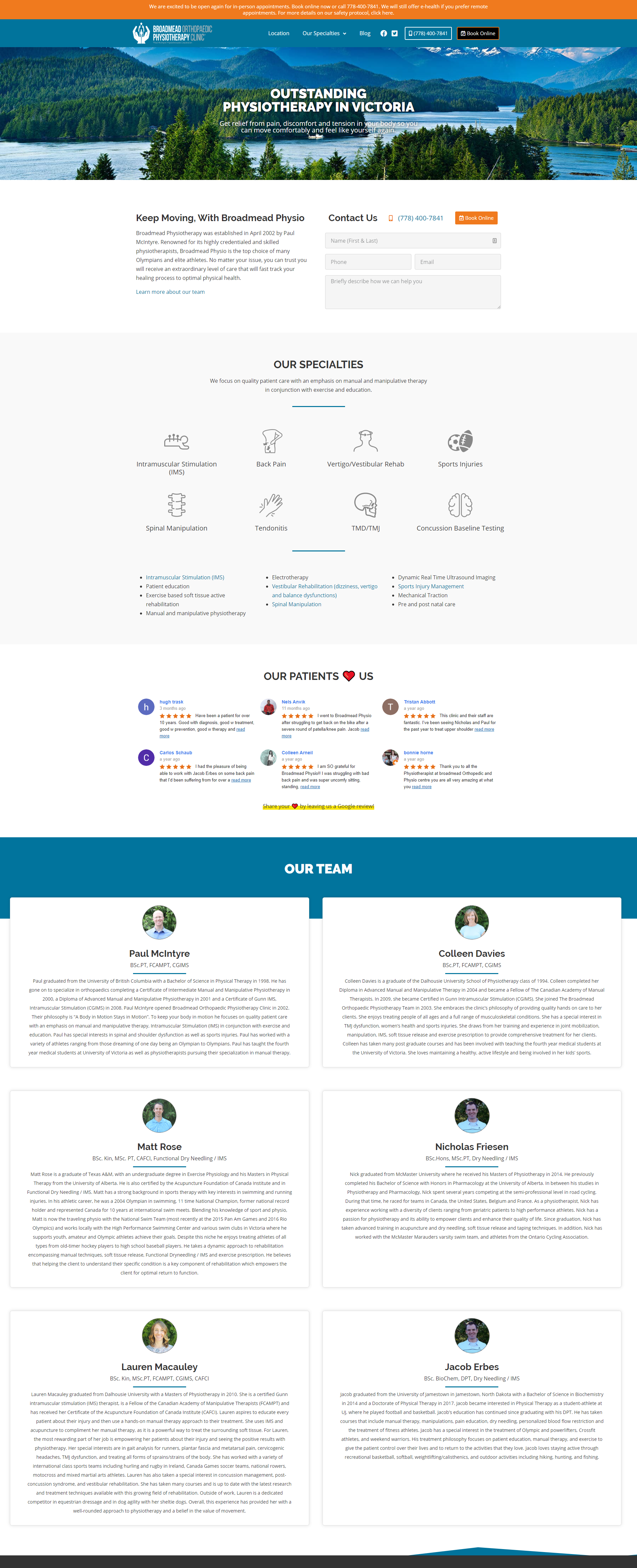Broadmead Orthopaedic Physiotherapy Clinic is a fantastic example of how to optimize your homepage content.