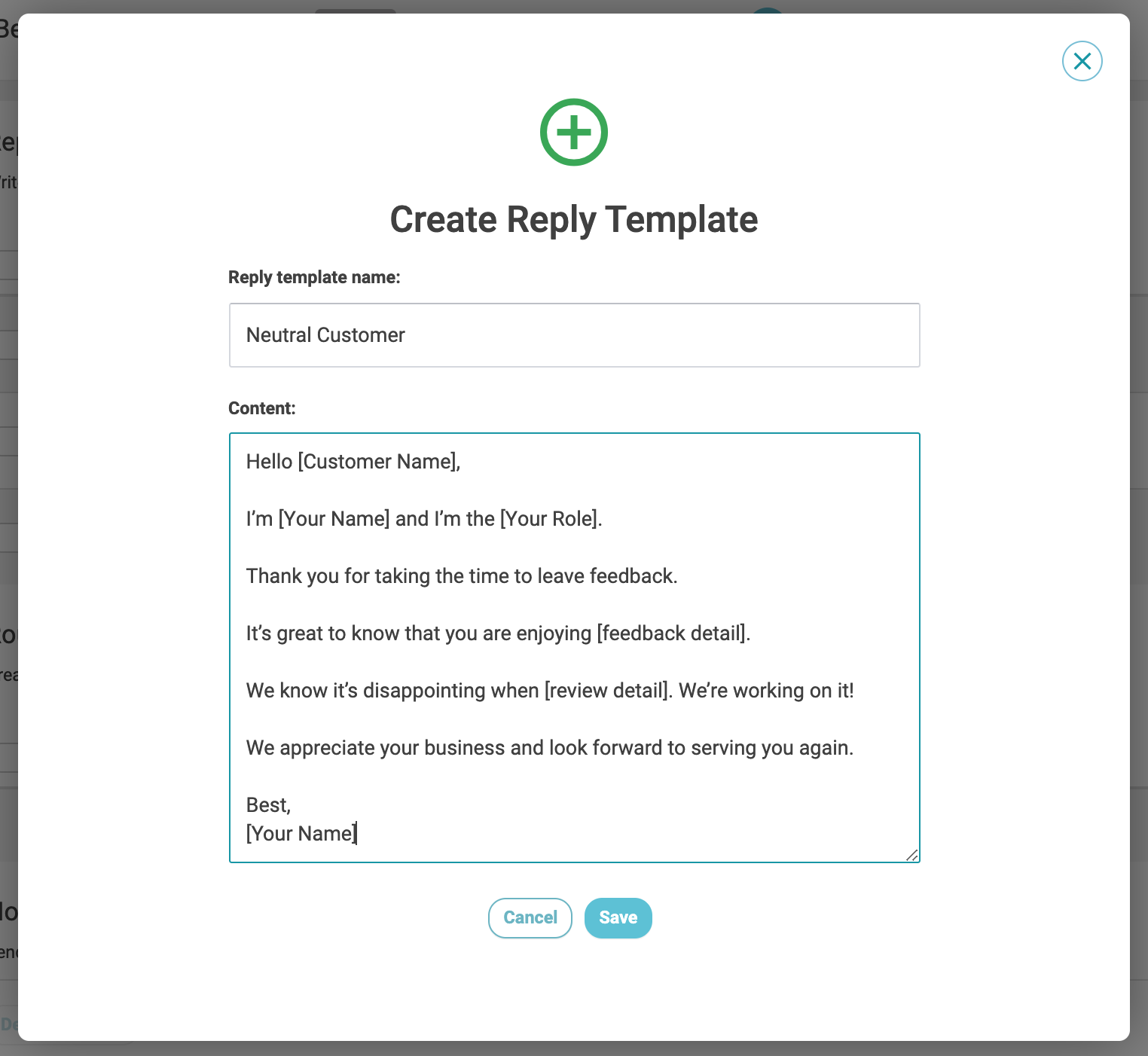 You can create templates for both positive and negative feedback to ensure timely responses and consistent communication standards, closing that feedback loop.Â