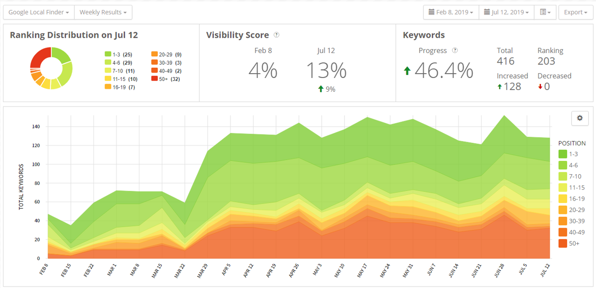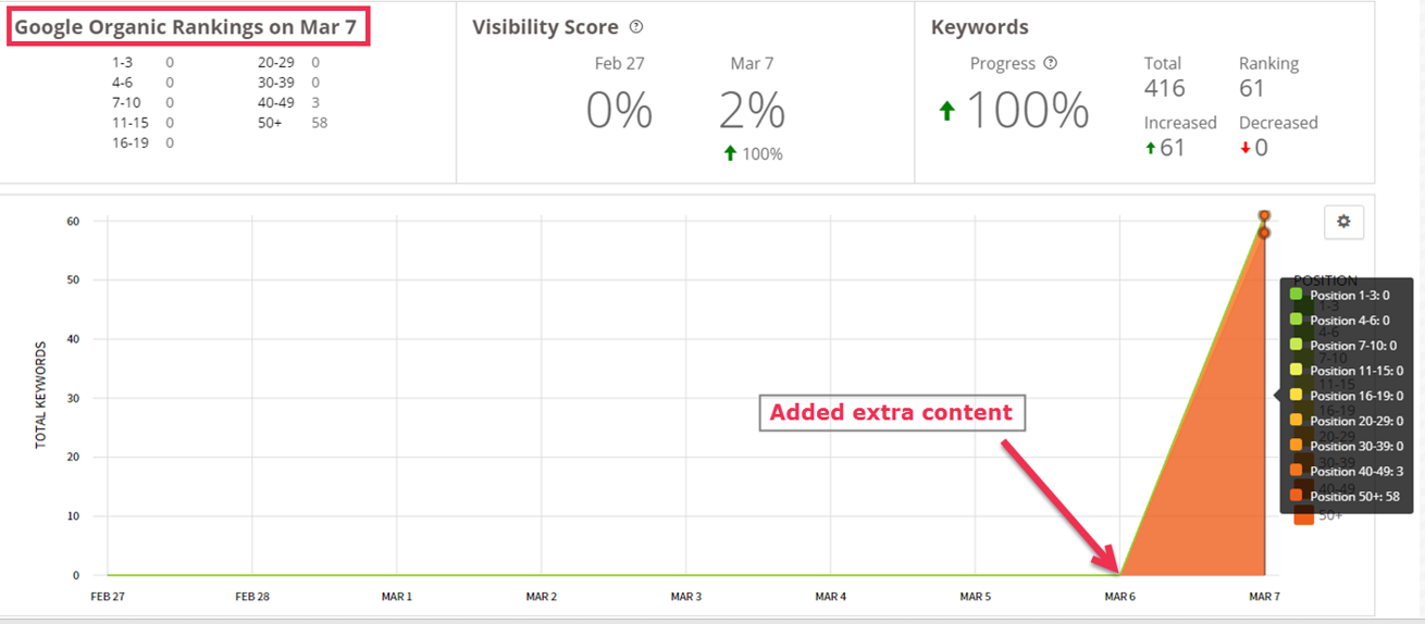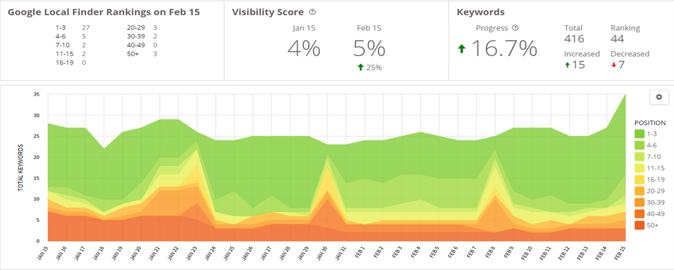 Then they started to get some reviews in March, which was helpful. We saw a little bit of a ranking boost from the reviews. From March 15th to March 30th, you can see the rankings start to pick up a little bit once the reviews started coming in.