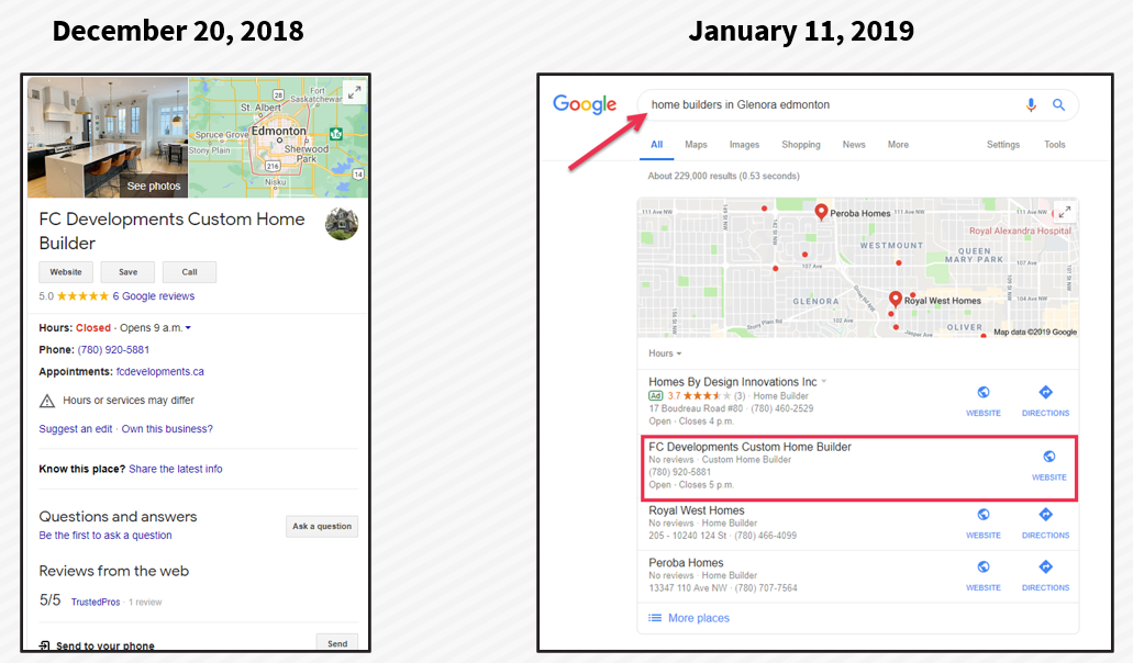 First, we created a brand new GMB listing. On December 20, 2018, I registered the listing, it went live on January 11.