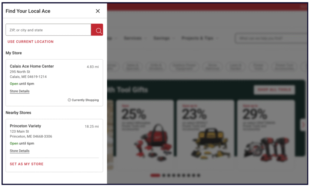 If the website is e-commerce-enabled, landing pages can link to filtered inventory that guarantees that a particular product is available at a nearby location. If a product is not available at the branch closest to the customer, they should be shown the next-nearest branch that has it in stock.