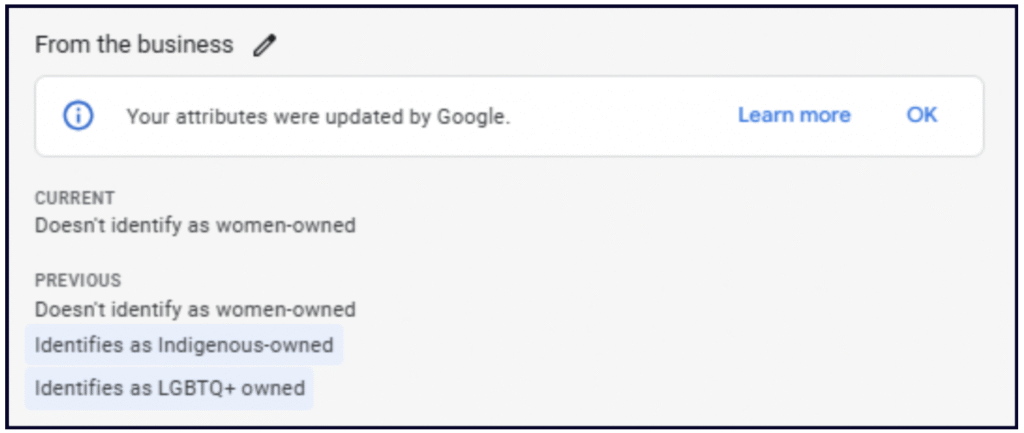 Put extra care into this section that highlights special features of the business location that could match a specific customer intent. Your Google Business Profiles contain a section called “Attributes” that looks like this in your New Merchant Experience dashboard and which can give you some amenity ideas: