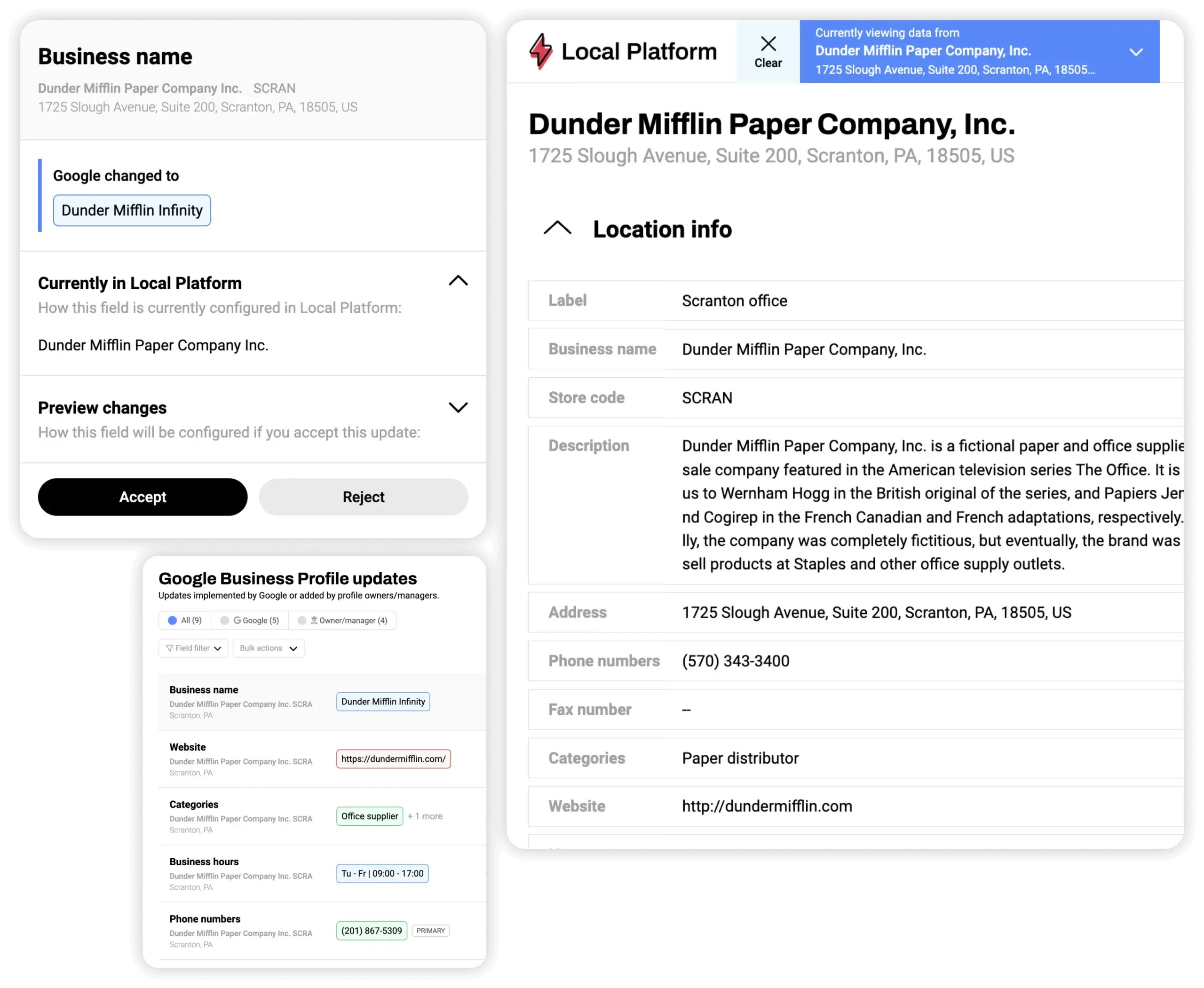 The Local Platform helps streamline the workflow, and keep you in the know about any changes being made to your Business Profiles, while also providing a better interface for managing your business info on Google.