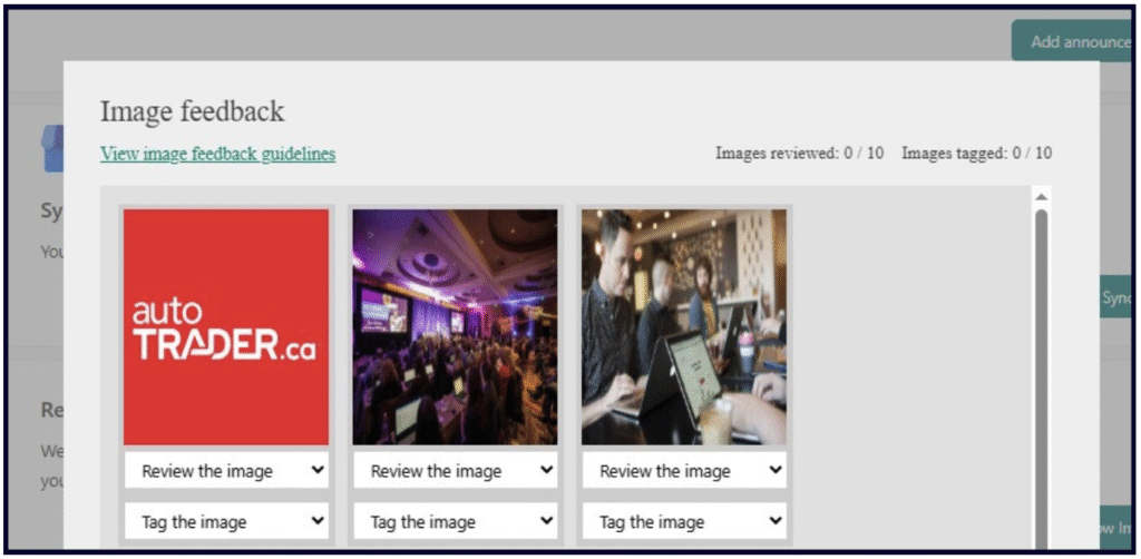 As mentioned in Bingâs photo guidelines, the platform will pull in additional images they feel might be relevant to your business. From the home screen of your dashboard, click on the âReview Imagesâ button in the âRelated Imagesâ section. You can then review each image to specify whether it is or isnât a photo of your business, features a copyright issue, contains offensive content, features a privacy concern, or is of poor quality.